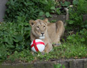 2014年6月12日,伦敦动物园内狮子大玩有英格兰印着国旗团的足球助威英格兰世界杯。...