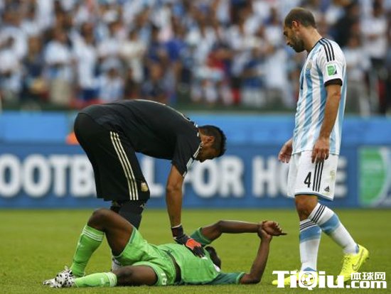【导读】在比赛场上,各种断胳膊断腿的惨烈场面并不算罕有,可是被球打断胳膊,并且还是被自己的队友射断胳膊的场面就不那么常见。阿根廷3比2战胜尼日利亚的比赛中,就发生这种悲剧性的一幕。